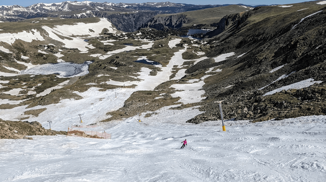 Beartooth Basin is a ski area located along the Beartooth Highway. It’s only open in summer because the area receives heavy snowfall during the winter, making access and operations challenging. During the summer months, the snowpack melts enough to allow for skiing and snowboarding on the remaining snowfields.