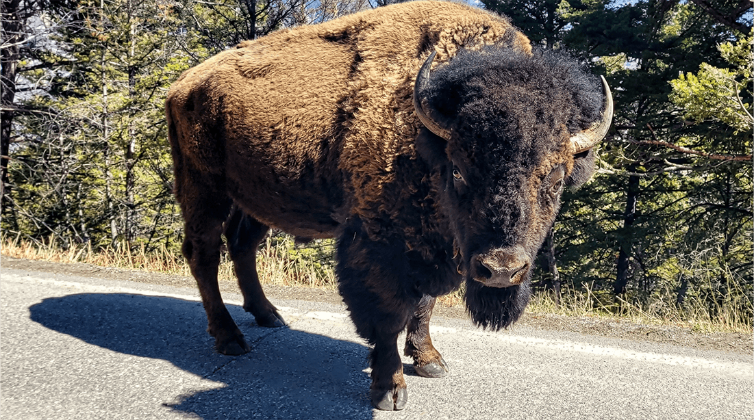 12. There is wildlife in and around Cooke City and Silver Gate. People have seen a moose run down the middle of the street; others have seen bears walking down the center dividing line in the road. Bison are often in parking lots and fox roam the area in the evening.